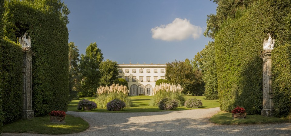 Sorta su di un edificio già esistente nel 1412, essa appartenne sin dai primissimi anni del XVI secolo ai Diodati, potente famiglia lucchese di mercanti, il cui stemma, scolpito in pietra grigia di Matraia, si trova ancora oggi all’ingresso nord della Villa. Sotto i Diodati assunse forme rinascimentali, ancora leggibili nel loggiato a tre arcate del salone anteriore. Tuttavia, fu solo con i successivi proprietari che venne ad assumere la veste neoclassica che conserva tutt’oggi. Tra la metà del 1600 e la metà del 1800, infatti, la Villa passò di proprietà prima ai Conti Orsetti, poi ai Marchesi Cittadella ed infine fu acquistata, nel 1868, dal banchiere tedesco Rodolfo Schwartze, marito di Carolina Grabau. E’ grazie alla passione di Carolina ed agli scambi con l’Orto Botanico di Lucca che il parco venne arricchito di tante rarità botaniche ancora oggi presenti. La sorella di Carolina, Costanza, aveva sposato il Barone Wilhelm Hüffer, ricco uomo d’affari che viveva con la moglie tra Roma, Parigi e Lucca, dove avevano acquistato l’adiacente Villa Diodati. Il fratello, Carlo Luigi, detto Lodovico, abitava nella Villa di famiglia a Palmata: uomo colto e raffinato, era uno stimato pittore amico di molti “Macchiaioli”. Il padre di costoro, Carlo Grabau, facoltoso banchiere e armatore, originario di Amburgo, si era trasferito a Livorno nei primissimi anni del 1800 per seguire i suoi affari e con l’incarico di Console Generale delle Città Anseatiche del Mare del Nord presso il Granduca di Toscana. In Italia conobbe e sposò Enrichetta Inghirami, di un’antica famiglia patrizia di Volterra. Gli Schwartze non ebbero figli e la villa fu ereditata dal nipote di Carolina, Marcello Grabau, sposato con Francesca Cenami Spada, della importante famiglia patrizia di Lucca.