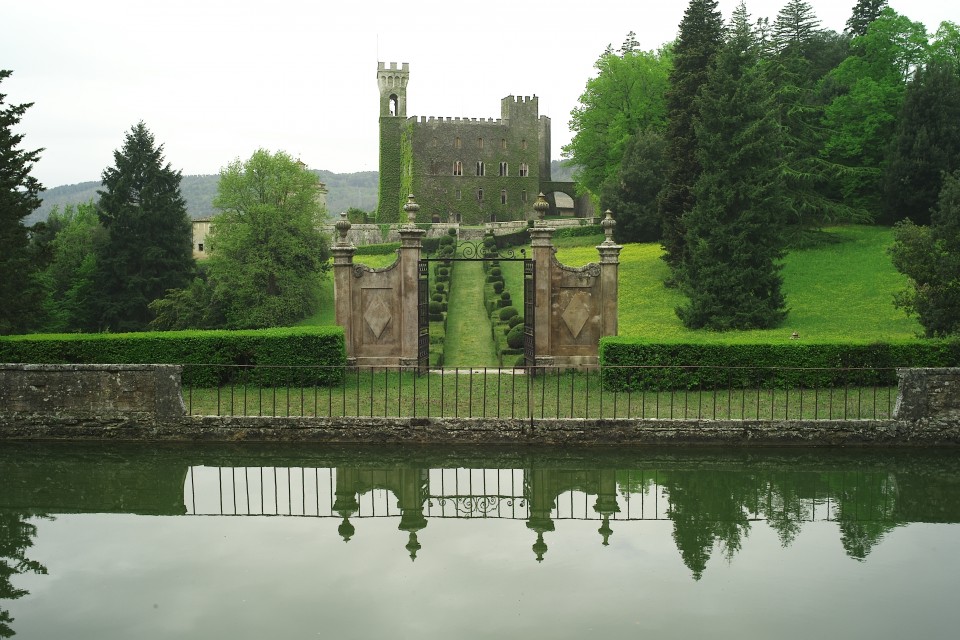 Orario di apertura 10:00-13:00; 15:00-18:00 E’ possibile visitare il giardino all’italiana del XVIII secolo prospiciente il Castello, la Cappella circolare progettata da Baldassare Peruzzi, il Bosco inglese e il parco. Sul lato est del Castello ai piedi di una gradinata, parte un viale di cipressi tagliati ad arte topiaria che porta a un vasto parco cintato da muro, nel quale si trova una ampia peschiera con decorazioni a rocaille che rappresentano il Gange, il Nilo, il Danubio e il Mar della Plata.