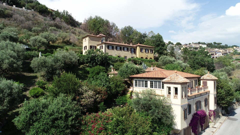 Borgo Riccio, sovrastato dalla chiesa fortezza del SS. Salvatore del XII secolo, sorge a limitare il centro storico di Torchiara, paese medievale a pochi chilometri da Paestum e dal mare bandiera blu di Agropoli, in provincia di Salerno. Immerso in un parco di circa tre ettari, caratterizzato da macchia mediterranea e dalle colture tipiche del luogo, Borgo Riccio è un’incantevole oasi di pace dove è possibile assaporare il vivere lento della cultura del Cilento. Antica proprietà della famiglia Riccio di Torchiara, restaurata e ristrutturata a partire dagli anni ‘90, Borgo Riccio si articola su più livelli collegati da scale in pietra e mattone tipiche del luogo. Il complesso è composto da due case e tre colombaie: quella bassa offre un salotto, quattro camere con bagno privato, un tavolo in pietra sotto il pergolato fiorito ed un pensatoio all’ombra del grande ulivo. Salendo la scala si giunge alla piazzetta del forno a legna dove si apre Salone Milano, dotato di attrezzature di proiezione avanzate e wifi e arredato con elementi di design. Riprendendo la scala si arriva alla piscina ed alla casa alta con i suoi salottini all’aperto, che portano alla piazzetta della palma da cui si risale verso il paese attraverso il viale delle palme. Attraverso gli antichi portali si accede al pianterreno, al salotto con il grande presepe napoletano e alla sala da pranzo con i vecchi camini in pietra, allo studiolo, e al piano superiore ad altre tre camere con bagno privato. Riscendendo dalla casa alta si giunge alla biblioteca, alla camera del torrino con bagno privato e allo spazio benessere dove vi è l’ area gym, idromassaggio e sauna a disposizione degli ospiti.