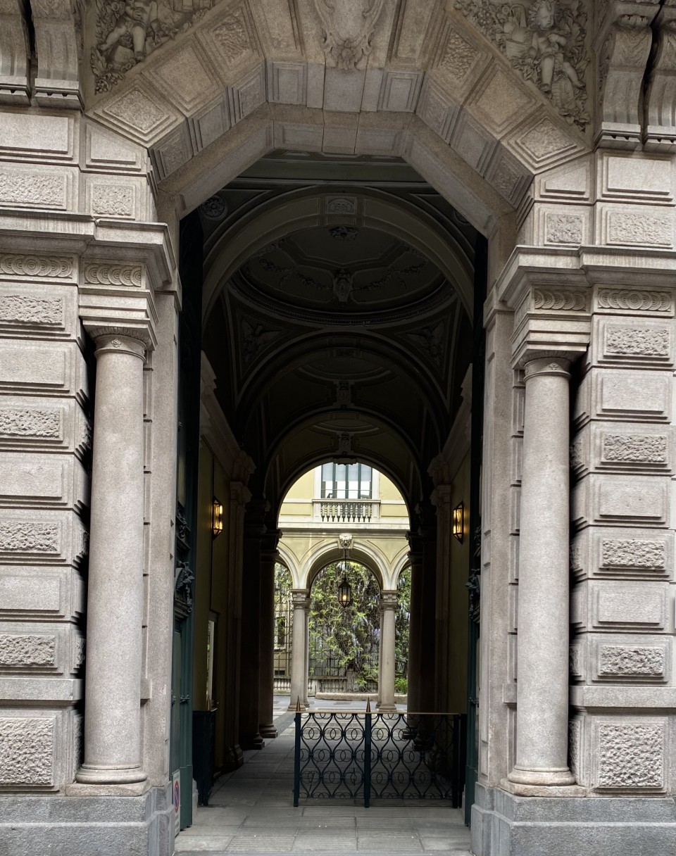 Visita del cortile. Visita libera e gratuita, con obbligo di prenotazione attraverso il form di adsi, ogni ora a partire dalle ore 10:40. Visita guidata a pagamento a cura di MilanoGuida, con obbligo di prenotazione attraverso verso il link: www.milanoguida.com/cortili-aperti-2021