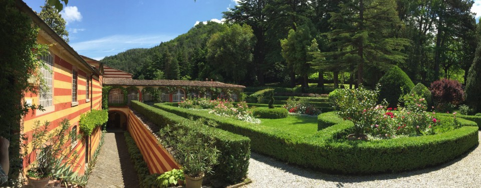 Palazzo Fantini è lo splendido risultato di una serie di costruzioni stratificate attraverso i secoli. La struttura originale è stata realizzata nel Seicento, ma è solo alla metà del secolo successivo che il palazzo ha assunto l’attuale fisionomia. Al Novecento risalgono le pregevoli decorazioni Liberty. Su iniziativa dell’attuale proprietario sono state recuperate fedelmente le scuderie, le cantine, le due ampie corti e i granai, tipici delle antiche tenute signorili di campagna. Parco e giardino all’italiana sono un gioiello di notevole fascino. La porzione allestita a parco ospita specie ricorrenti nei grandi giardini paesaggistici italiani: oltre a lecci, ippocastani, tigli, pioppi bianchi, agrifogli, fanno bella mostra di sé, conifere come Abies pinsapo, Pinus nigra e soprattutto maestosi cedri (Cedrus libani, C. deodara e C. atlantica). Su questo sfondo grandioso risaltano le bordure in bosso potato, entro le quali in primavera spiccano per contrasto coloratissime rose. I prati, le vasche di ninfee, le aiuole di rose antiche, le bordure miste, i festoni di Bergenie sottolineano e movimentano il disegno.