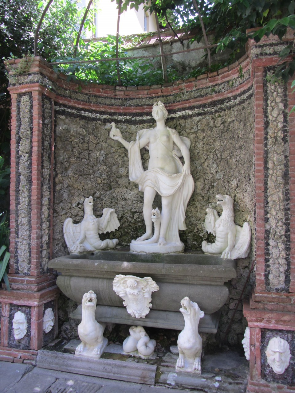 Il palazzo fu costruito su commissione di Giovanni Controni a partire dal 1668 e divenne di proprietà della famiglia Massoni nella prima metà dell’Ottocento. Il giardino ha mantenuto le decorazioni e la struttura originaria: è organizzato in maniera simmetrica, con quattro aiuole sopraelevate di forma quadrata delimitate da muriccioli ornati a grottesco e con mascheroni di marmo di pregevole fattura. Lungo i tre lati del perimetro una vasca continua, destinata a contenere piante, presenta la stessa decorazione delle aiuole. Al centro, sul lato opposto al loggiato, in asse con l’ingresso, vi è una grotta con fontana ed ornamenti scultorei: domina al centro una figura femminile con due aquile ai piedi, poggianti su una piccola vasca rettangolare, che è sostenuta da due statue raffiguranti dei cani. La tipologia della grotta, rimanda alla tipica architettura da giardino del territorio lucchese sviluppatasi fra il Cinque e Seicento.