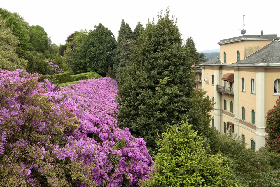 Villa Motta è sulla punta della penisola di Orta, affacciata sul lago. Fu costruita nella seconda metà dell'Ottocento, e fu acquistata nel 1921 da ROSA ANTONIONE MOTTA moglie di GIACINTO MOTTA, uno dei fondatori dell'industria elettrica italiana. La villa viene a diverse riprese ampliata, fino a portarla all'attuale forma di gusto ecclettico. Iniziato nel 1880, il giardino si stende sulle pendici della collina che circonda la villa. Diversamente da molti parchi tradizionali, qui prevalgono i cespugli, raggruppati in boschetti (camelie, osmanti e rododendri) e siepi (azalee), mentre le conifere raggruppate in boschi (fra esse, abeti del caucaso) fungono da quinta. Il giardino è perciò luminosissimo, ed offre molte prospettive sul lago e sull'isola di S. Giulio. Le fioriture si alternano durante tutto l'anno: rose (maggio-ottobre), osmanti (settembre-ottobre), camelie invernali (sasanqua), camelie primaverili (japonica, reticulata, cuspidata, ibridi williamsii ed altre), rododendri ed azalee. Fra le piante notevoli, un ibrido di rododendro arboreo alto circa quindici metri, la collezione di camelie, e le siepi di centinaia di azalee rosa, antiche di oltre ottant’anni, che ogni anno fioriscono intorno al dieci maggio.