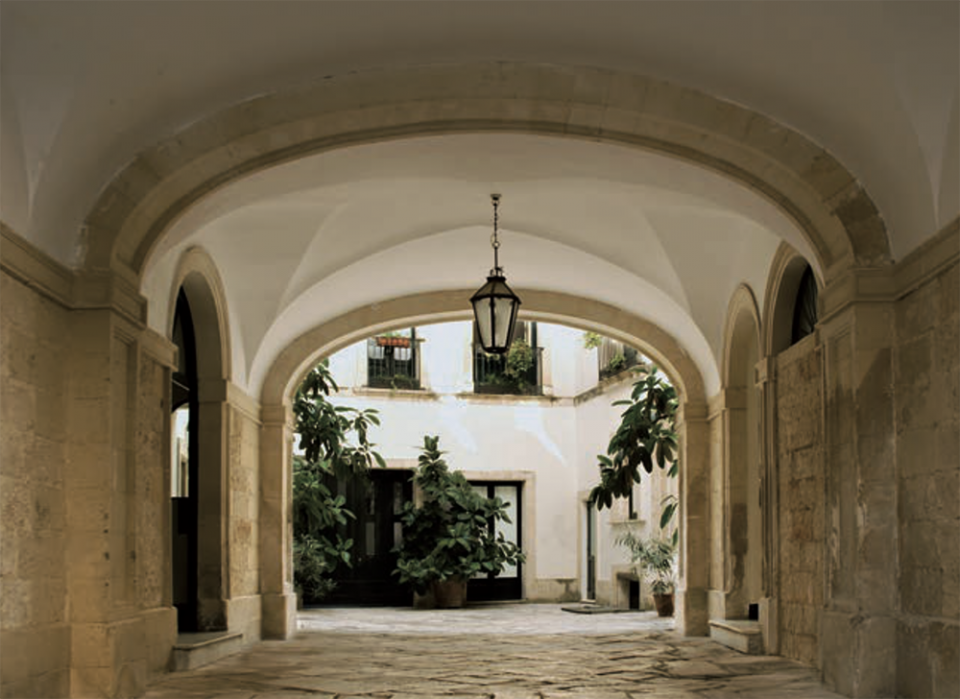 L’edificio della seconda metà dell’Ottocento è il risultato delle radicali trasformazioni di tre abitazioni preesistenti, certamente di origine ed impianto rinascimentali. Da un classico androne ad arco ribassato si accede ad un atrio scoperto, armonioso nella sua semplice linearità.