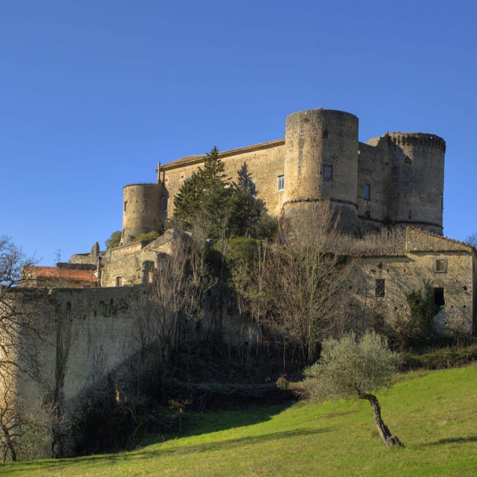 Il castello era compreso nell'antica regione sannitico-irpina, poi territorio romano e nel medioevo facente parte del Ducato Longobardo del Principe Arechis. Situato sopra il borgo medioevale di Prata Sannita, in posizione difensiva, presenta un'antica prigione posta alla base della torre piccola, dove ancora oggi si possono vedere i graffiti dei prigionieri lì detenuti