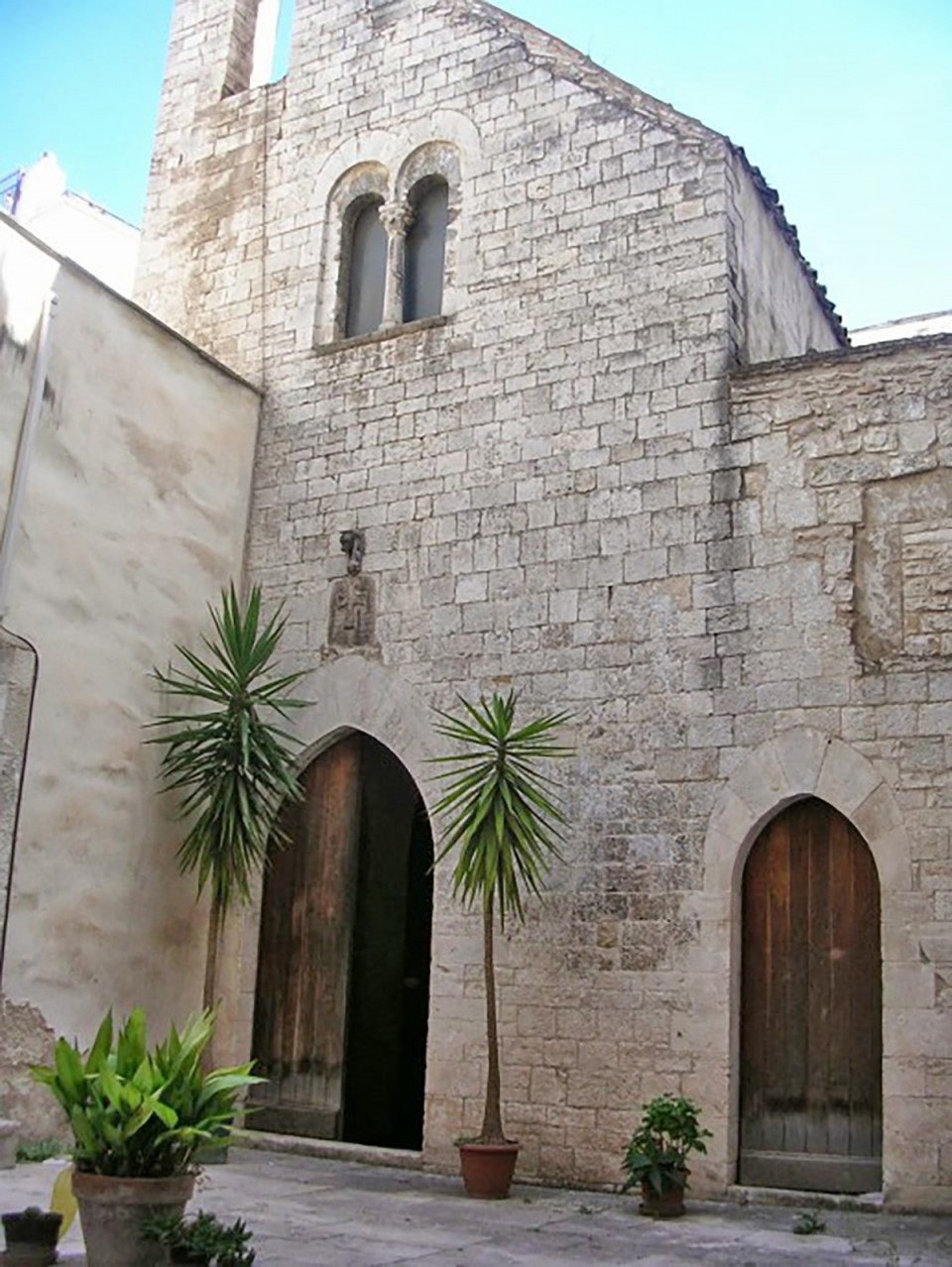 Chiesa medievale a tre navate con una facciata a bugnato liscio. Bellissima la piccola bifora e il campanile a vela. pregevole è il pavimento con tessere a mosaico ordinate secondo motivi religiosi