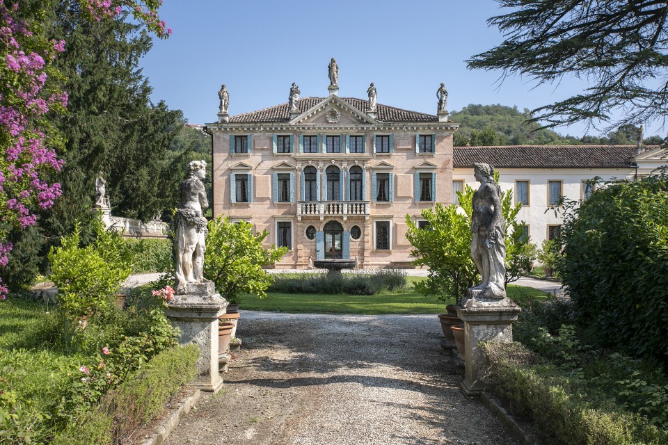 A Tramonte sorge un palazzetto elegante che rispecchia la grazie e le proporzioni dell'architettura del '700. Quest'oasi che nel 700 era di proprietà dei Rosa, appartenne prima ad una stirpe che ebbe pochi abati e molti uomini d'arme, quella dei Camposampiero, una delle più antiche e più illustri del territorio padovano. I Camposampiero discendevano da Tiso dei Tisi cavaliere tedesco vassallo di Berengario I (910). Stirpe fedele ai principi di libertà, nemica di Ezzelino, poco amica dei Carraresi, soffrì dai dominatori di Padova persecuzioni e confische e più tardi, vedendo malvolentieri la dominazione veneta, fu costretta all'esilio. L'ultima della famiglia a godere la villeggiatura di Tramonte fu Flaminia che andò sposa al nobile dott. Giovanni Antonio Miero. Vedova e senza figli, costei decise di ritirarsi nel monastero di San Pietro in Padova. E prima vendette i beni di Tramonte, 2000 ducati, al nobile Franceco Domenico Rosa, abitante a Padova in contrada Torricelle. I Rosa, famiglia arricchitasi con la mercatura, commerciavano in mercerie e granaglie ed avevano a Padova una bottega all'insegna della rosa. L'acquirente trovò la villa trascuratissima e gli parve che l'amenità del luogo valesse la pena di ampliare ed abbellire la dimora. Francesco ampliò la villa costruendo una foresteria adiacente al Palazzetto, rifacendo dalle fondamenta la chiesetta e disponendo con gusto architettonico il giardino (come la villa oggi appare al visitatore). Il palazzo è coronato da una cornice dentellata e da un frontone che racchiude nel timpano lo stemma dei Rosa, una rosa rossa in campo d'oro, e da cinque belle statue. La villa attira specialmente per la varietà e la eleganza dei ferri battuti di ignoto artefice, di certo artista non comune. Oggi ammiriamo nella villa alcuni quadri, incisioni e disegni - ve ne sono del Piazzetta - e i quattro putti di legno intagliati attribuiti ad Andrea Brustolon.