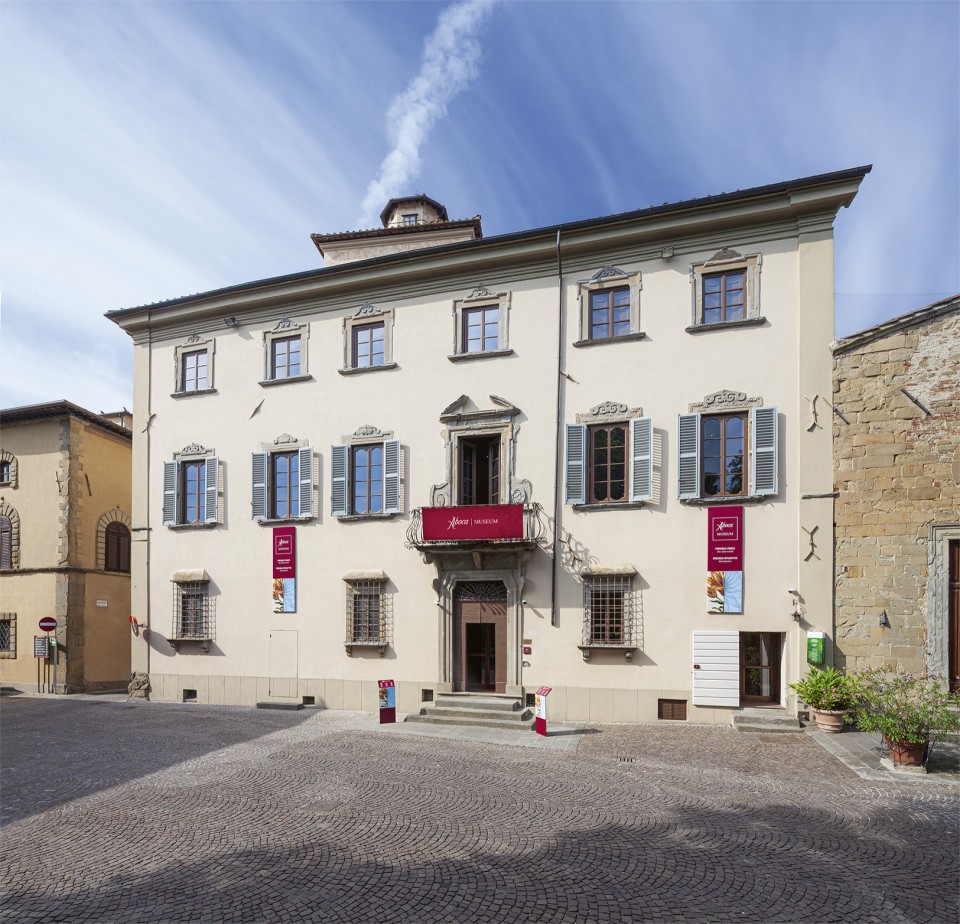 Dopo la battaglia di Anghiari nel 1440 Borgo Sansepolcro, con grande soddisfazione dei suoi abitanti, fu ceduto dai papalini per 25.000 ducati d’oro alla Repubblica Fiorentina, sotto la cui signoria restò sino all’Unità d’Italia. Nel 1500 Giuliano da Sangallo, architetto di fiducia di Lorenzo de’ Medici, venne mandato a Sansepolcro per dotare la città di nuove mura e fortificazioni e, secondo il suo progetto, la città venne abbellita delle mura che tutt’oggi si possono ammirare. Da questo momento prese il via la costruzione dei più bei palazzi che sono l’ornamento della città, tra cui Palazzo Bourbon del Monte che, dopo un sapiente restauro, dal 2002 ospita l’esposizione museale di Aboca Museum. Caratterizzato dalla facciata seicentesca e addossato alla chiesa di San Rocco, il palazzo è il risultato di più accorpamenti realizzati su probabili costruzioni medievali, di cui si conservano tracce negli scantinati e nella Torre del Catolino, datata tra il XII e XIII secolo e facente parte dell’antica cinta muraria cittadina. L’edificio, costruito alla fine del XVII secolo, già nel 1703 subì gravi danni a causa di un terremoto e da questo periodo cambiò più volte proprietà. Questo palazzo è dotato di un ampio salone delle feste che veniva utilizzato anche come teatro per esibizioni di compagnie di attori e di musici biturgensi. Nel salone è raffigurato lo stemma dei marchesi Bourbon del Monte: uno scudo azzurro con tre gigli d’oro attraversato da un bastone nodoso. Inoltre, quali feudatari imperiali, i marchesi del Monte ebbero il privilegio di innalzare sullo stemma l’aquila bicipite degli Asburgo-Lorena che erano subentrati ai Medici nel governo della Toscana. La famiglia Bourbon del Monte fu strettamente legata alla storia di questa città sin da epoca remotissima. I marchesi acquisirono il palazzo alla fine del Seicento dalla storica famiglia degli Alberti e il marchese Monaldo, ventiduesimo Reggente del marchesato, sembrandogli il clima di Sansepolcro più mite e confortevole di quello di Monte Santa Maria, vi abitò tra il 1685 e il 1757. Alla fine del 1700 il palazzo passerà alla famiglia Capassini, poi ai Cattani ed infine ai Tricca.