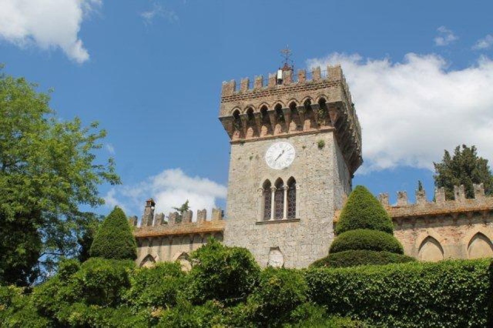 La villa venne costruita alla fine del Seicento. Danneggiata da un terremoto nel 1798, venne rimaneggiata su progetto dell’architetto senese Agostino Fantastici, il quale fece la facciata e lo scalone secondo il gusto romantico dell’epoca. Antistante alla villa c'è un grande piazzale, delimitato da alti cedri del Libano. Un grande scalone, ornato da 4 statue, porta al piano superiore, dal quale si accede al giardino a terrazze, ricco di conche di limoni e di siepi di bosso e sul fondo del quale si affaccia un grande teatro dei lecci, pure attribuito al Fantastici. Dario Niccodemi scrisse per questo teatro all’aperto "L ‘alba il giorno e la notte", opera che vi fu presentata nel 1920. A destra si eleva un torre duecentesca (vedetta senese sulla via Fiorentina) che da il nome alla villa. A sinistra si apre il grande giardino all'italiana. La villa appartiene da sempre alla famiglia Sergardi Biringucci. Costruita alla fine del Seicento per la famiglia senese Biringucci, venne portata in dote da Olimpia Biringucci, ultima discendente di una importante famiglia, quando sposò Curzio Sergardi. Da allora venne aggiunto al cognome Sergardi quello Biringucci. Dal loro matrimonio nacque il famoso umanista e poeta Lodovico Sergardi, avvocato concistoriale e Presidente della fabbrica di San Pietro, chiamato, secondo l’usanza dell’Arcadia, Quinto Settano. Nella villa ha soggiornato nel 1798 il Papa VI (Braschi) quando fu costretto a lasciare Roma a seguito dei moti rivoluzionari. Vi soggiornò pure Richard Wagner nel 1880, mentre si dedicava all’orchestrazione de Parsiphal.