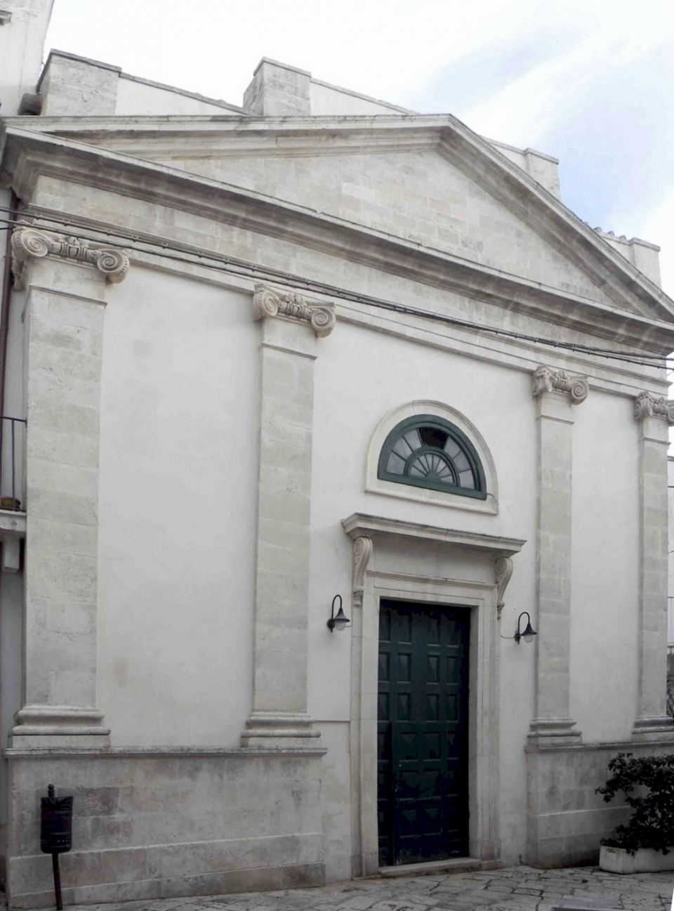 La chiesa del Carmine, risalente al XVII secolo, sorge nel centro antico di Noci, lungo l’omonima via e, a giudicare dalla configurazione attuale, ha senz’altro subito, dall’epoca della sua fondazione, degli interventi successivi particolarmente rilevabili nella facciata principale, che appare interessata da un intervento neoclassico ascrivibile alla seconda metà dell”Ottocento. L’edificio sacro risulta incastonato per tre lati all’interno del tessuto edificato antico. Solo parte del muro perimetrale di sud-ovest, infatti, oltre alla facciata, emerge dalle case contigue. I lavori di restauro eseguiti hanno interessato in particolare l’intera superficie intradossale della cupola, delle arcate che la sostengono e la pulitura delle pareti, restituendoci, in particolare, l’antico splendore del ciclo pittorico della volta.
