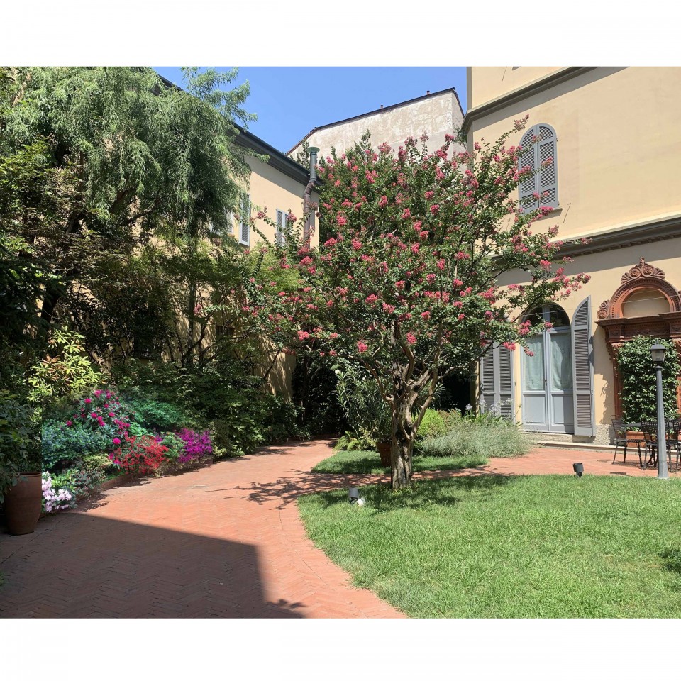 Nel cuore di Via Cernaia 1 sorge un palazzo, la cui costruzione ebbe inizio nel 1880. Questo edificio si ispira allo stile neoromanico pisano, e alle maestose architetture dell'epoca comunale. In sintonia con il fervore patriottico dell'epoca, il palazzo si inserisce nell'atmosfera del revival architettonico predominante. La struttura, sviluppata su tre piani, è caratterizzata da una facciata dipinta con eleganti strisce orizzontali grigie e bianche. Le finestre ad arco a tutto sesto e i balconi in pietra finemente lavorati adornano la facciata, mentre i portali in cotto al piano terreno richiamano con eleganza lo stile delle finestre. Situato tra il campanile e l’abside della chiesa di San marco, incastonato nel cuore di Brera, l’edificio, in grande parte residenziale, offre anche uno spazio destinato ad eventi: Spazio Cernaia. Questo affascinante ambiente, caratterizzato dalla contrapposizione di due stili architettonici diversi, offre un giardino nascosto e curato nei minimi dettagli, oltre a uno spazio sotterraneo di gusto contemporaneo, sobrio ed elegante, ideale per ospitare eventi, mostre d'arte, riunioni aziendali e sessioni fotografiche. Spazio Cernaia si distingue come una delle location più prestigiose di Milano, vantando il riconoscimento del Fuorisalone Award 2023 con l'evento "SolidNature - Beyond the Surface", firmato dallo Studio Oma per la Design Week 2023. —--------------------------------------------------------- In the middle of Via Cernaia 1 stands a palace, the construction of which began in 1880. This building is inspired by the Pisan Neo-Romanesque style, drawing inspiration from the majestic architecture of the communal era. In tune with the patriotic fervour of the time, the palace fits into the atmosphere of the prevailing architectural revival. The three-floor structure is characterised by a façade painted with elegant grey and white horizontal stripes. Round-arched windows and finely worked stone balconies adorn the façade, while the portal on the ground floor elegantly echoes the style of the windows. Situated between the bell tower and the apse of the Church of San Marco is Spazio Cernaia, set in the heart of Brera, designed to host events. This fascinating ambience, characterised by the juxtaposition of two different architectural styles, presents a hidden garden with meticulous attention to detail, as well as a contemporary, sober and elegant underground space, ideal for hosting events, art exhibitions, corporate meetings and photo sessions. Spazio Cernaia stands out as one of the most prestigious locations in Milan, having been awarded the Fuorisalone Award 2023 with the event 'SolidNature - Beyond the Surface', signed by Oma Studio for Design Week 2023.