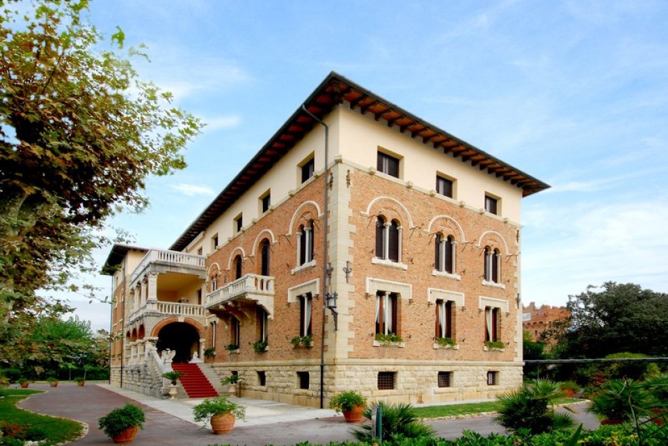 Il Park Hotel Villa Ariston, nacque agli inizi del 1900, in una zona della marina versiliese che un tempo era un'area solitaria e selvaggia. Fu per tale motivo, quale luogo di quiete lontano dall'imminente crescita e sviluppo dei centri limitrofi, che il Senatore Rolando Ricci, al tempo ambasciatore onorario del Re Vittorio Emanuele III, fece costruire la sua dimora signorile quale residenza personale. Il suo desiderio era avere un luogo privato per trascorrere momenti di pace in armonia con la propria famiglia e i suoi illustri ospiti. Proprio li, immerso nella natura, venne eretto il castello inizialmente chiamato Villa Regina, in onore di sua moglie. Da quel sogno realizzato ebbe origine ciò che oggi è il Park Resort Villa Ariston, una residenza storica tra il mare e le Alpi Apuane. Proprio in questa tenuta, in stile medievale, nella quiete di un parco secolare, vi hanno soggiornato ospiti illustri come Giacomo Puccini, Gabriele D'Annunzio, Eleonora Duse il Re Vittorio Emanuele III, Guglielmo Marconi, solo per citarne alcuni. Con l'avvento della Seconda Guerra Mondiale si interrompe momentaneamente il periodo d'oro per la tenuta Rolandi Ricci, e a causa dei bombardamenti alcune strutture subiscono gravi danni, come la torretta che caratterizzava la villa. Nel dopoguerra viene tutto ricostruito e l'intera proprietà viene venduta ai fratelli Benelli, che la usano in un primo momento come ritiro di famiglia per i mesi estivi. A metà degli anni '50 il castello viene trasformato da dimora privata ad hotel, prendendo il nome di Ariston. Fu nel 1986 che la famiglia Codecasa, dinastia di imprenditori del mondo della nautica, rileva tutta la tenuta, tutt'oggi guidata con passione e professionalità. In questo splendido resort, si riuniscono le quattro strutture che la compongono: la Villa Residenziale, mantenuta nel suo charme in stile barocco di un tempo; la dependance Torre e la dependance Fattoria, che furono le case del fattore e dei suoi collaboratori che mantenevano la tenuta del parco e del primo frutteto in riva al mare. Ed infine la contemporanea Villa Duse che si fonde in perfetta armonia architettonica nel contesto residenziale. Tanta storia è stata vissuta sotto i grandi archi della villa e ancora oggi, dopo più di un secolo, varcando il grande cancello di ingresso, si riesce ancora a respirare un fascino dai sapori antichi che richiama il lusso e l'eleganza di un'epoca antica. Villa Ariston non ha sentito il passare del tempo rimanendo, ieri e oggi, uno dei posti più belli dove trascorrere le proprie vacanze. Il passato si è fuso con il presente in perfetta armonia, ciò che Villa Ariston, da sempre, vuole donare agli ospiti che vi soggiornano.